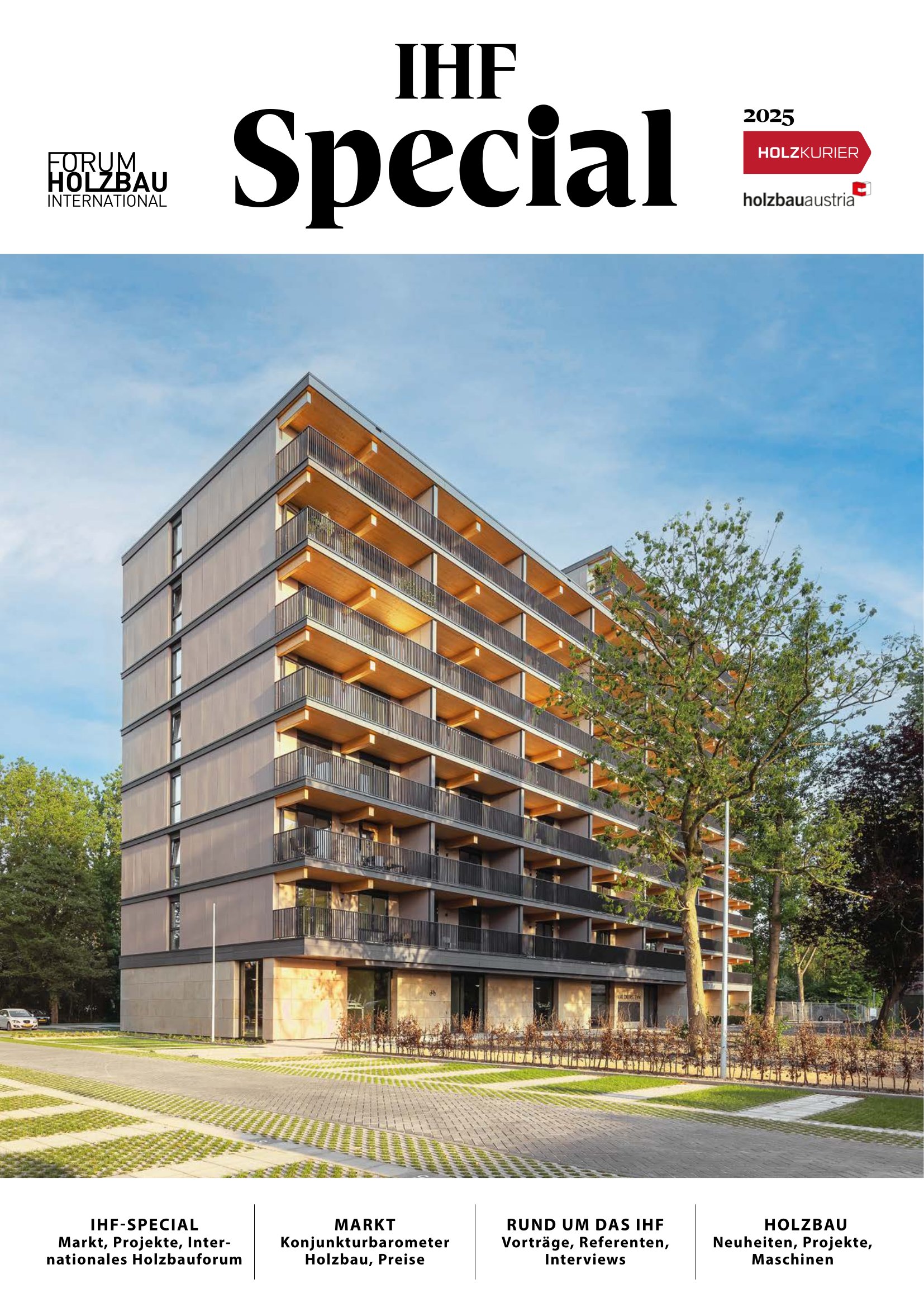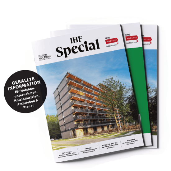 Drei Specials, drei thematische Schwerpunkte: Mit einer Sonderausgabe werden sämtliche Leser der Fachmagazine Holzkurier und holzbau austria erreicht. Zusätzlich bieten die dreimal jährlich erscheinenden Special-Ausgaben zu den Themen Brettsperrholz (BSP), Serieller Holzbau (SHB) und Internationales Holzbauforum Innsbruck (IHF) eine gezielte Ansprache der gewünschten Leserschaft. Die Beileger in den Fachmagazinen Holzkurier und holzbau austria basieren auf der Kompetenz der branchenweit größten Redaktion im deutschsprachigen Raum.